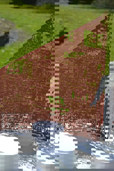De vakjury is onder de indruk van het ontwerp waarin de kunstenaar de verhalen van de wijkbewoners vertaalt naar gedetailleerde tekeningen en teksten die uitgesneden worden in Cortenstaal. Met haar aanpak slaat ze een brug tussen de wijkbewoners en de studenten. Door de uitsneden ontstaat er een speels schaduwspel wat kenmerkend is voor haar stijl.
